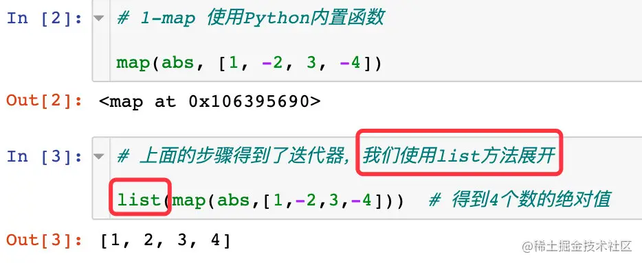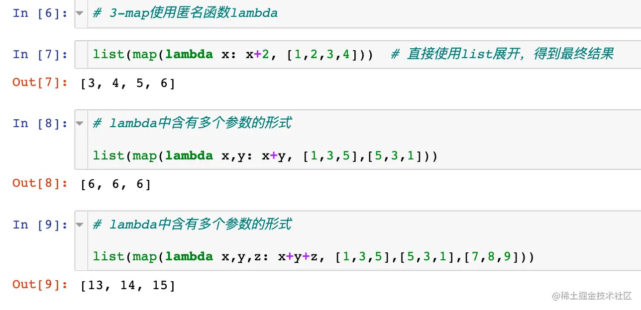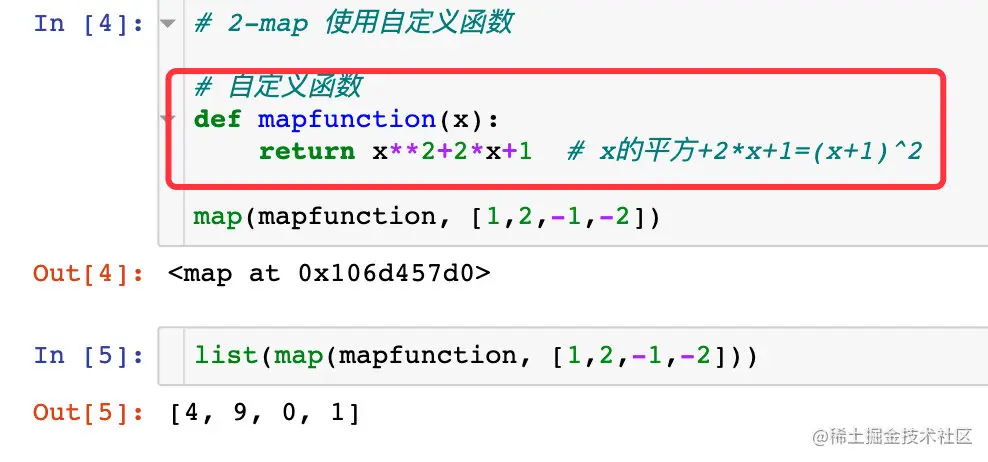 map函数的基本语法是map(func, seq),其含义指的是:对后面可迭代序列中的每个元素执行前面的函数func的功能,最终获取到一个新的序列。注意: