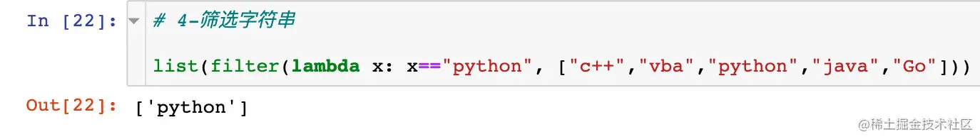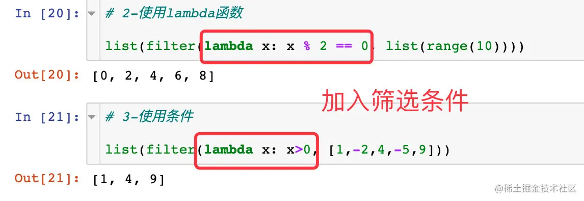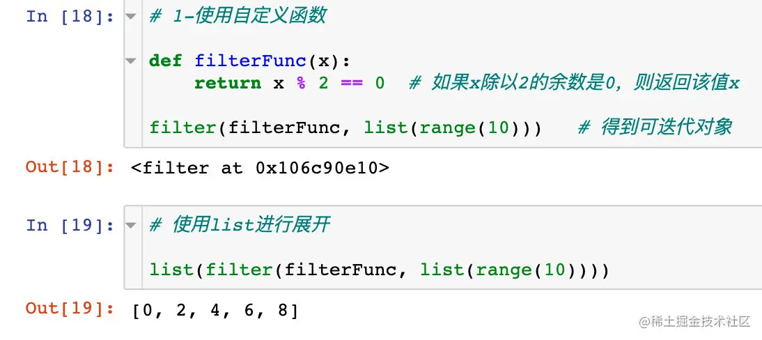 filter()函数用于过滤序列,过滤掉不符合条件的那些元素,返回符合条件的元素组成新列表。