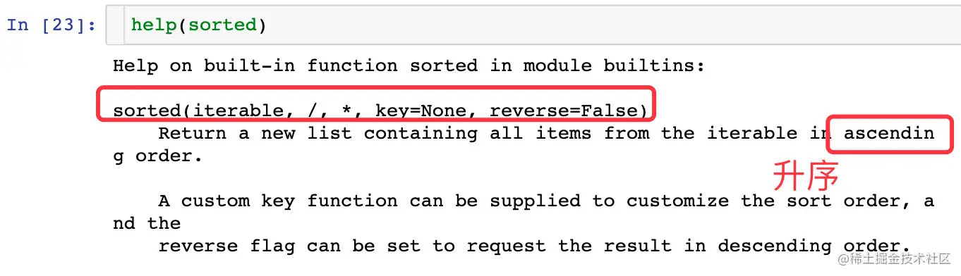 help(sorted) # 帮助文档