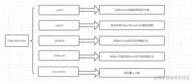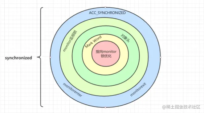 剥完第一层,反编译synchronized的方法以及代码块,我们已经知道synchronized是通过monitorenter、monitorexit、ACC_SYNCHRONIZED实现同步的,它们三作用都是啥呢?我们接着剥第二层: