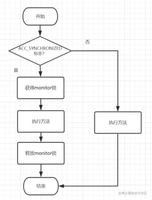 当调用一个设置了ACC_SYNCHRONIZED标志的方法,执行线程需要先获得monitor锁,然后开始执行方法,方法执行之后再释放monitor锁,当方法不管是正常return还是抛出异常都会释放对应的monitor锁。