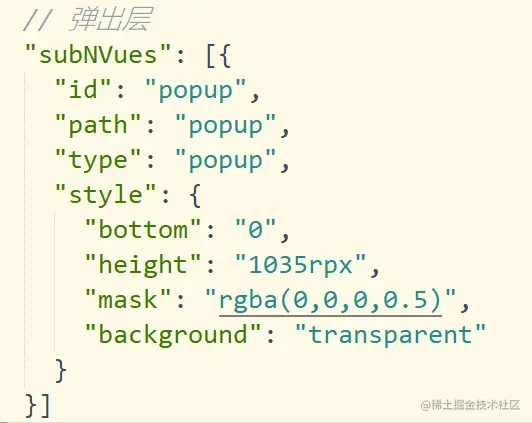 uni_app中配置subnvues时,注意background必须放在mask的后面,才可以设置弹出层的圆角
