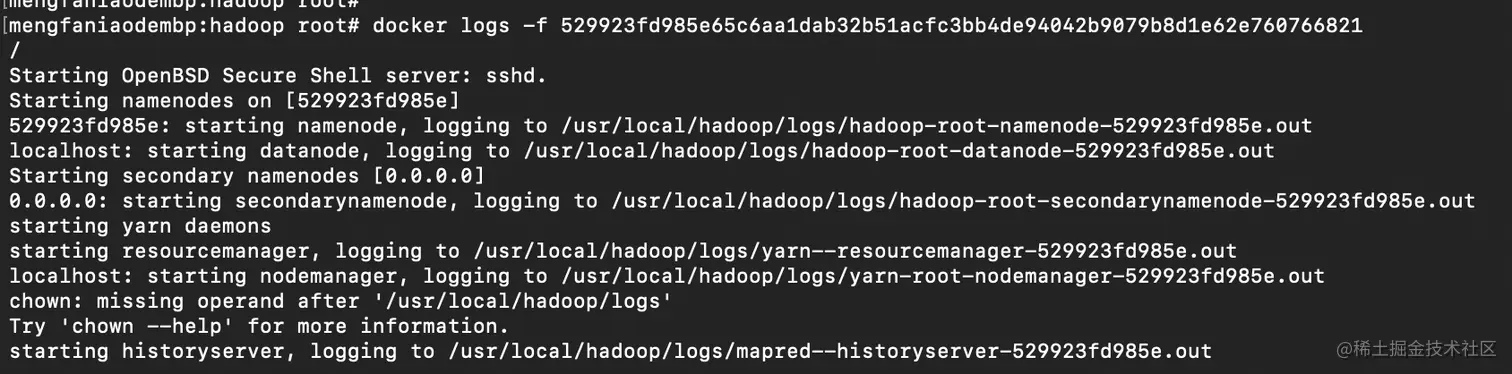 docker logs -f 529923fd985e65c6aa1dab32b51acfc3bb4de94042b9079b8d1e62e760766821