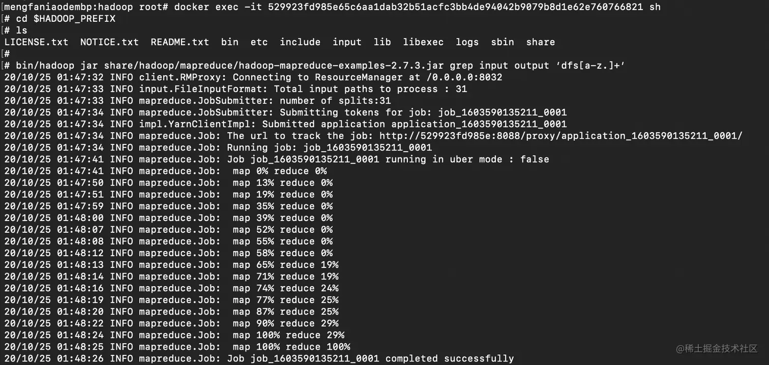 进入docker中 运行hadoop mapreduce