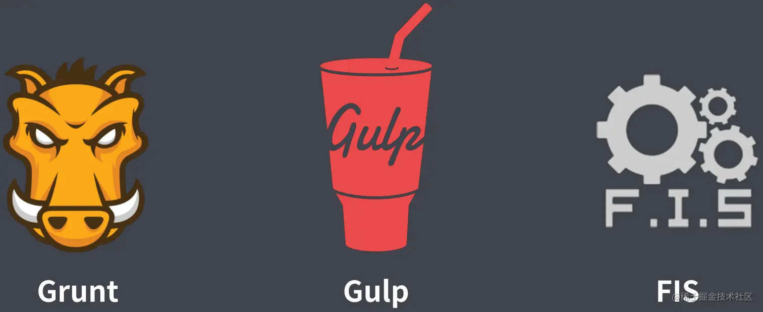 NPM Scripts确实能解决一部分的自动化构建任务,但是对于相对复杂的构建过程就显得非常吃力,这时候就需要更为专业的构建工具。这里我们先对市面上几个常用的自动化构建工具去做一个大致的介绍,让大家先有一个整体的认识后面再去做具体的深入探究。