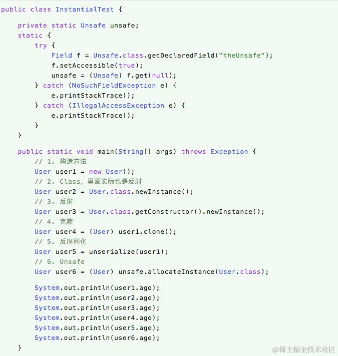 (6)通过Unsafe实例化一个类;