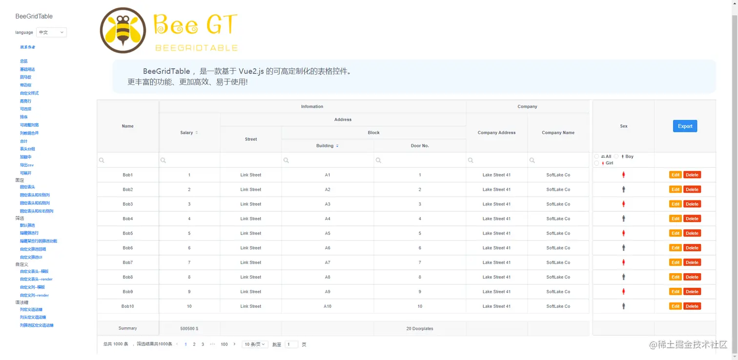 从上述可以看出,BeeGridTable的Api设计相当为用户着想了,整个表格的写法和elmentui的table差不多,而且功能确十分强大。