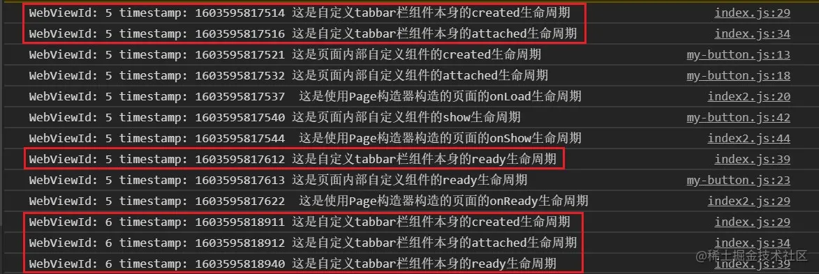在本期中, 我们介绍了微信小程序中较为常见的拥有生命周期的对象, 以及在组合使用时, 它们各自生命周期的顺序. 但微信小程序还提供了其它更为进阶的拥有生命周期的对象, 例如在微信小程序提供的自定义 tabbar 样例中使用到的 Component 构造器构造页面等...