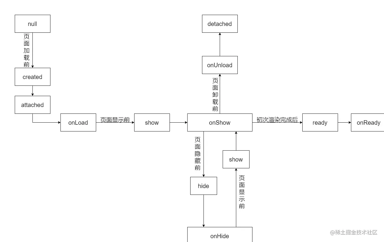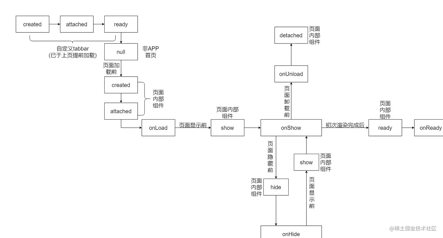 页面内部组件的生命周期和 Page 的生命周期可总结为下图: