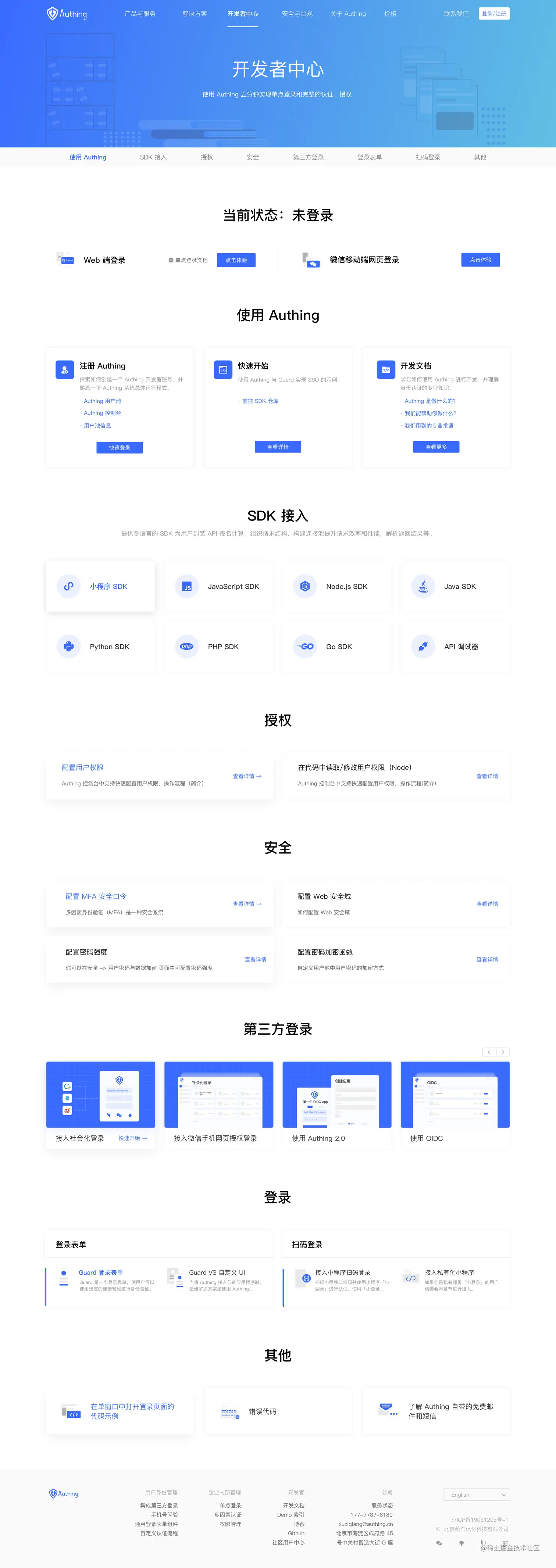 在开发者中心可以快速体验 SSO 流程、微信扫码登录,此外还有丰富的最佳实践和文档资料。