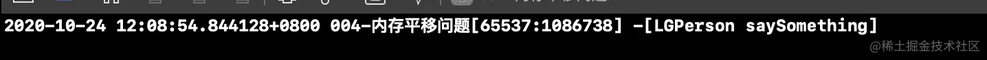 我们知道person对象调用saySomething方法,self.lg_name是通过指针平移8字节得到的,如下图: