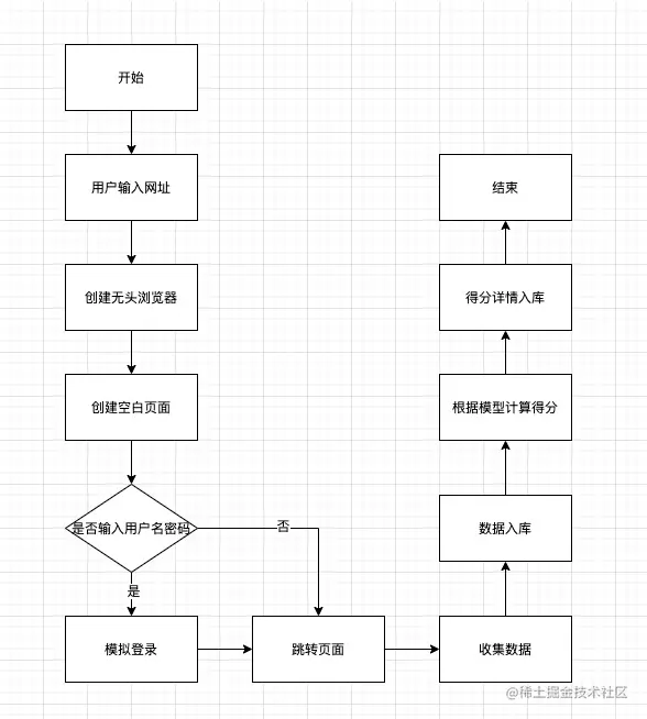 百策实现页面性能数据采集的方案主要依靠无头浏览器 Puppeteer 结合 Lighthouse,Puppeteer 是 Chrome 团队提供的一个无界面 Chrome 工具,人称无头浏览器,通过 API 来控制 Node 端的 Chrome。百策的主要逻辑是在服务端起一个无需显示的 Chrome,通过 Lighthouse 的 API 新建一个标签页并打开,Lighthouse 会计算具体的性能指标,具体的检测逻辑可以参考下图。接下来我会用关键代码说明如何实现其中的关键步骤。