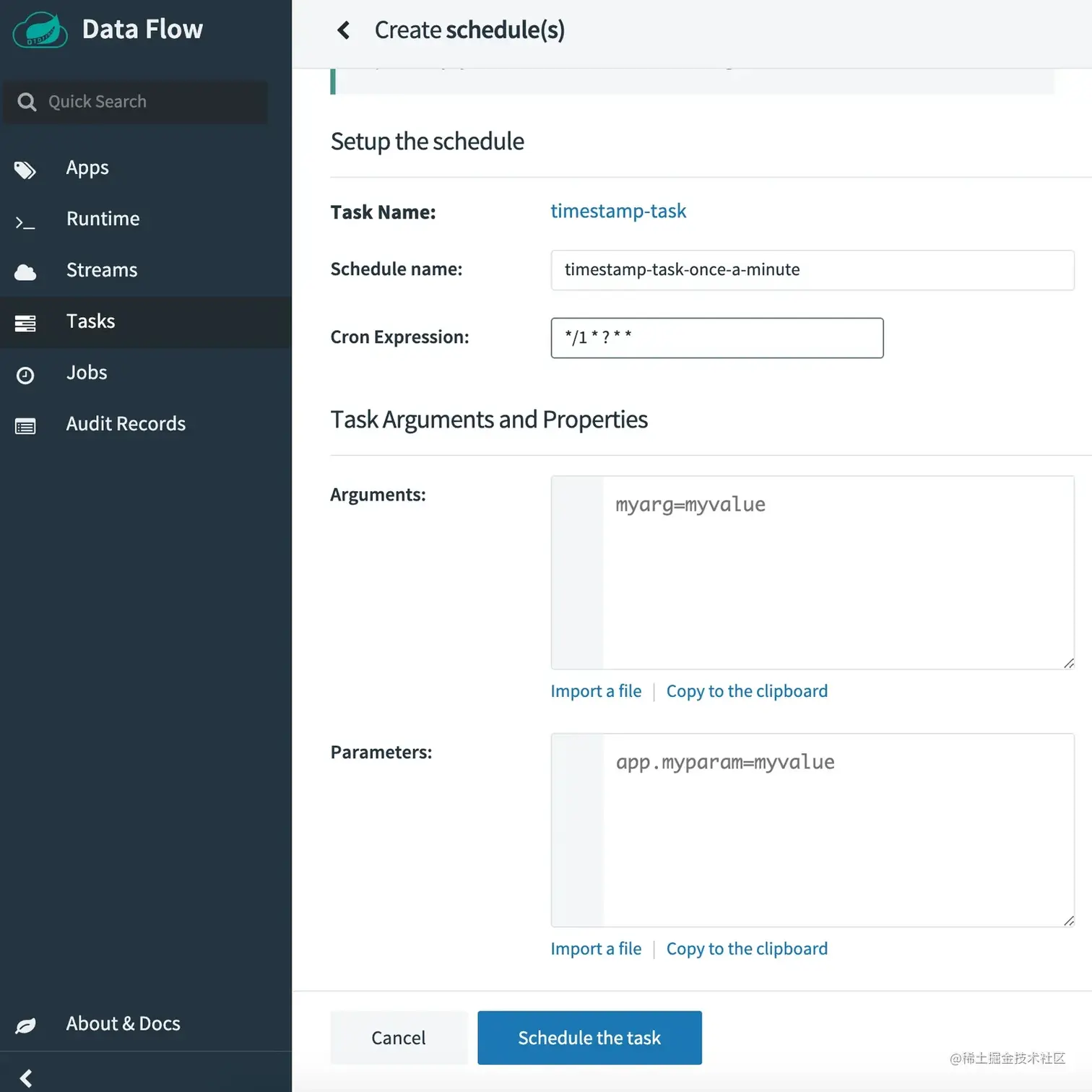 如果通过Cloud方式进行部署,可以指定定时任务,相比普通任务,可以通过cron expression设置定时
