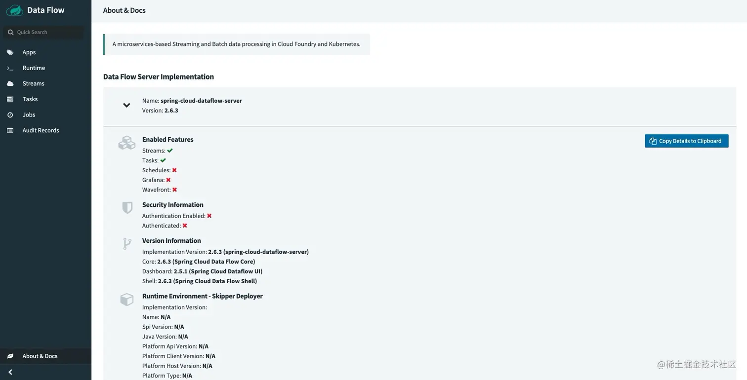 - Database: Data Flow Server和Skipper Server依赖关系数据库。