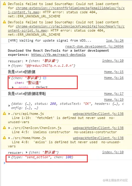 //根据图,我们可以得知,在reducer/index中定义的chen变量被修改啦