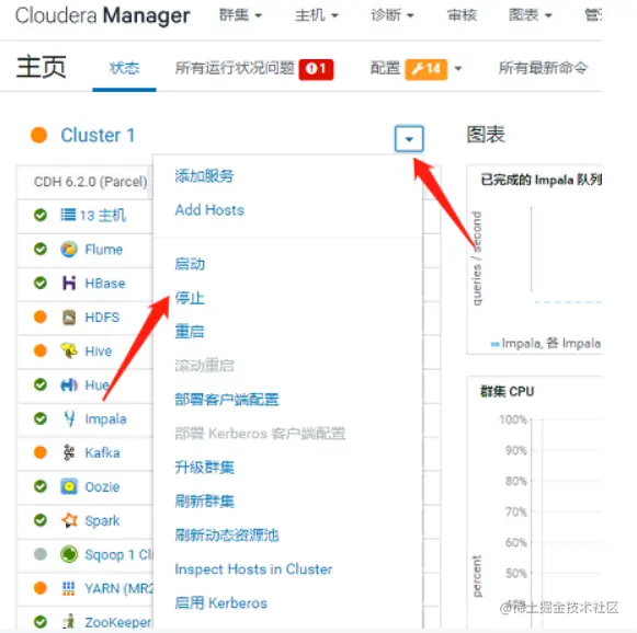 如果到此就重启cloudera-scm-server 的,起不来的。必须停止所有组件和CM的服务
