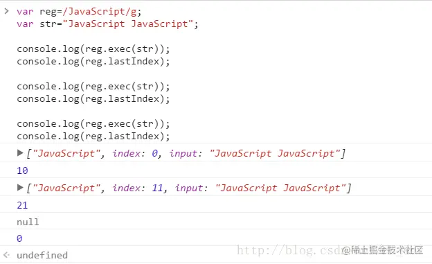 str.match(re); // 有g所以返回两个'JavaScript'