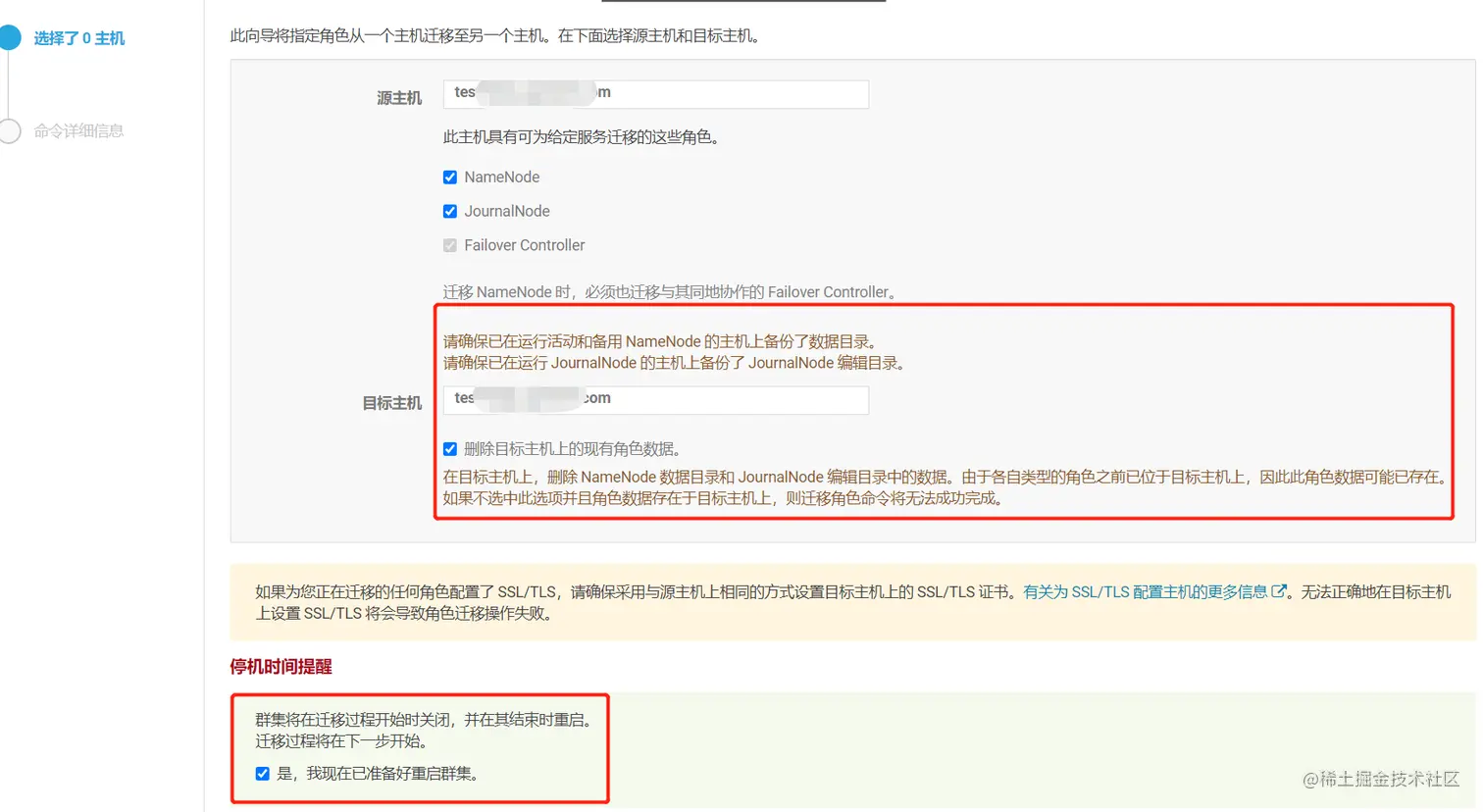 目标主机的dfs/nn dfs/jn 必须没有创建,迁移后会自动创建