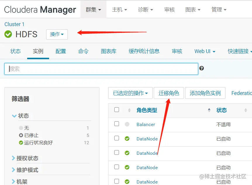 迁移之前所有的组件必须正常在运行中(Failover Controller JournalNode 必须正常运行)