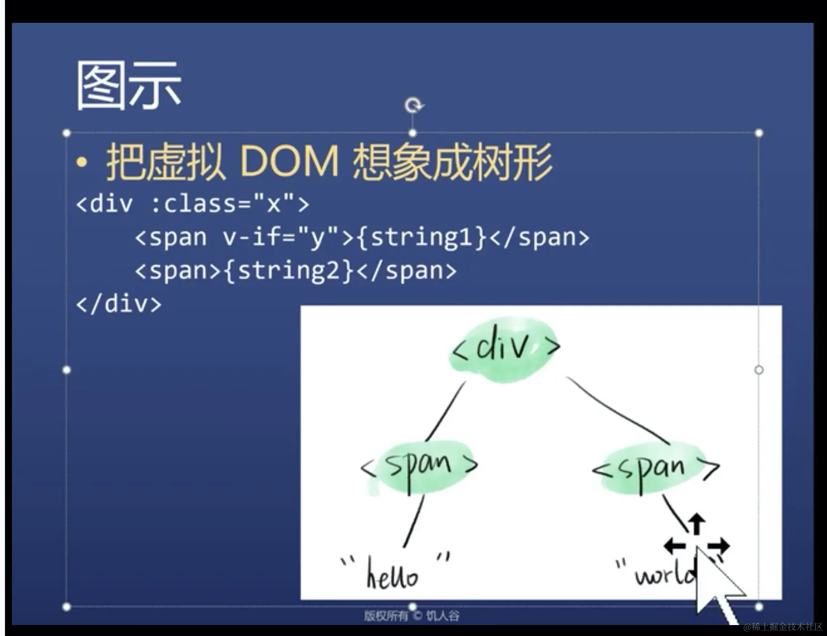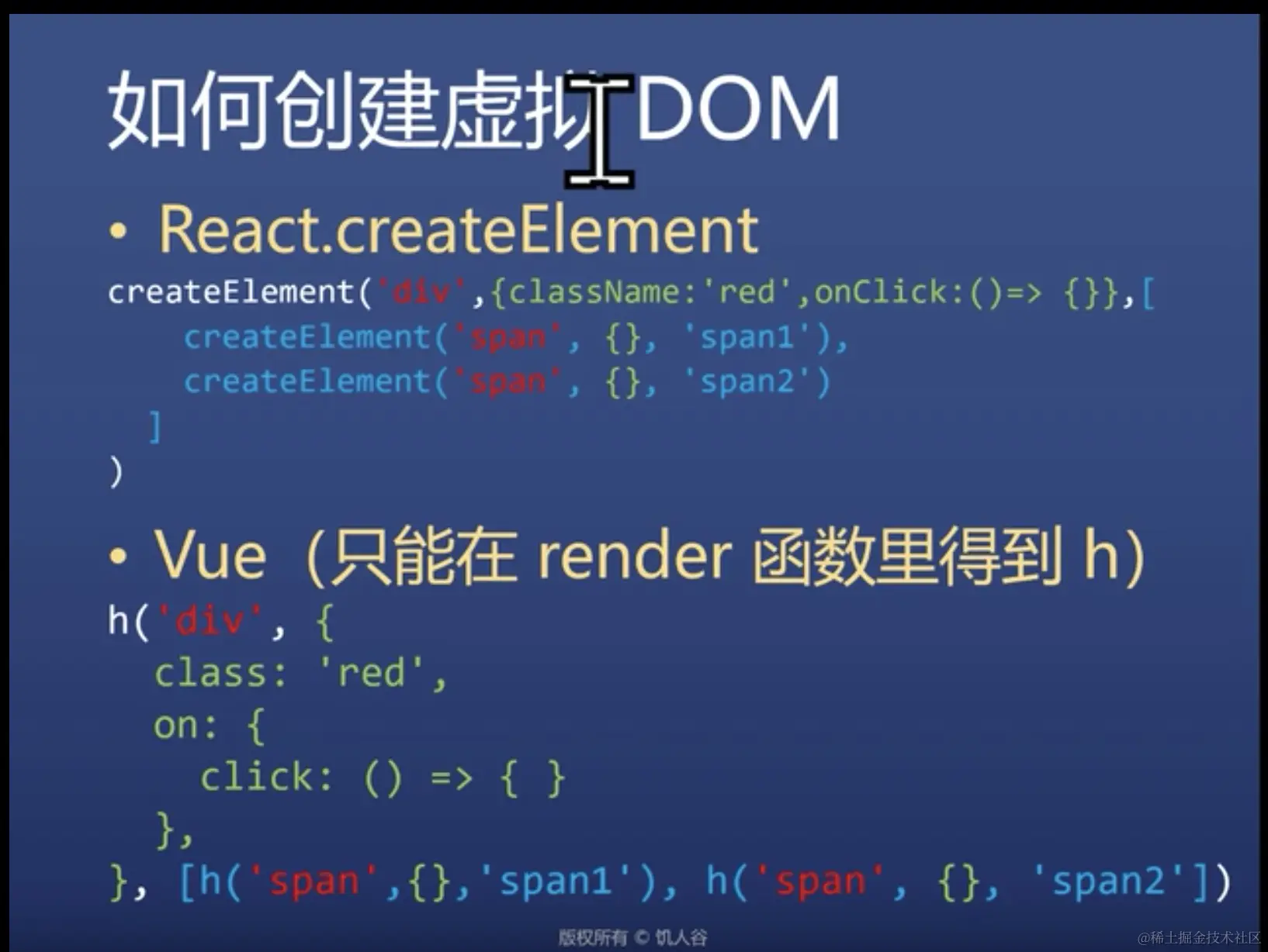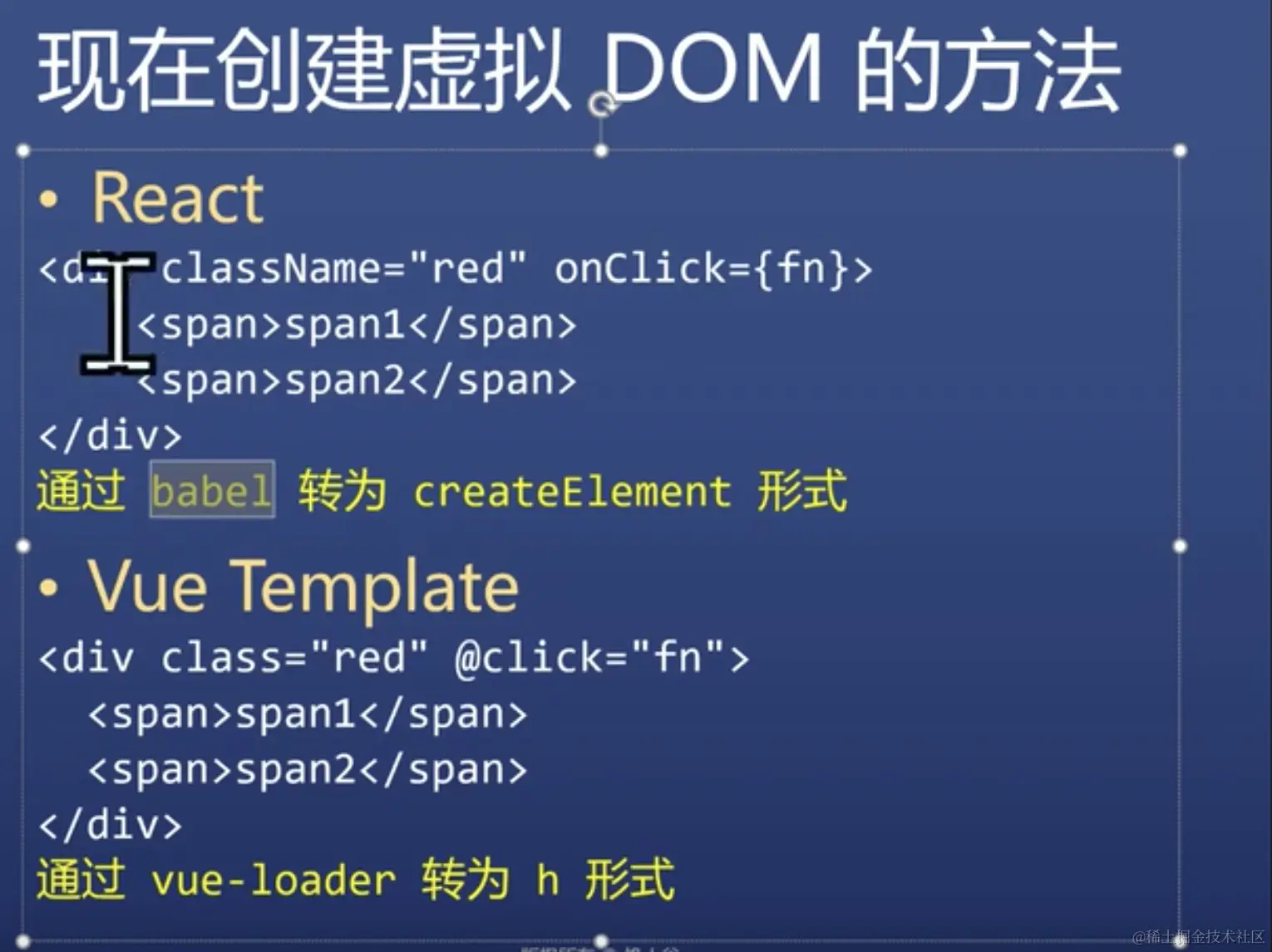 虚拟DOM与DOM Diff 的原理 南果梨 2020-10-26 243 阅读1分钟 jsx通过babel把dom转成createElement形式 如果用了jsx语法,但是也依赖打包工具,需要额外的构建过程 当操作dom少的时候虚拟dom优势更大 当操作dom多的时候 原生的速度就显现出来了,因为虚拟dom需要额外计算许多,所以更慢 diff