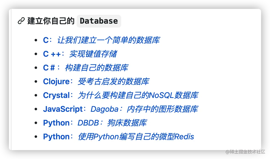 这个项目为此也提供了相关的内容,帮助你实现一个属于自己的数据库。
