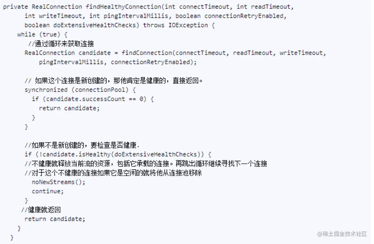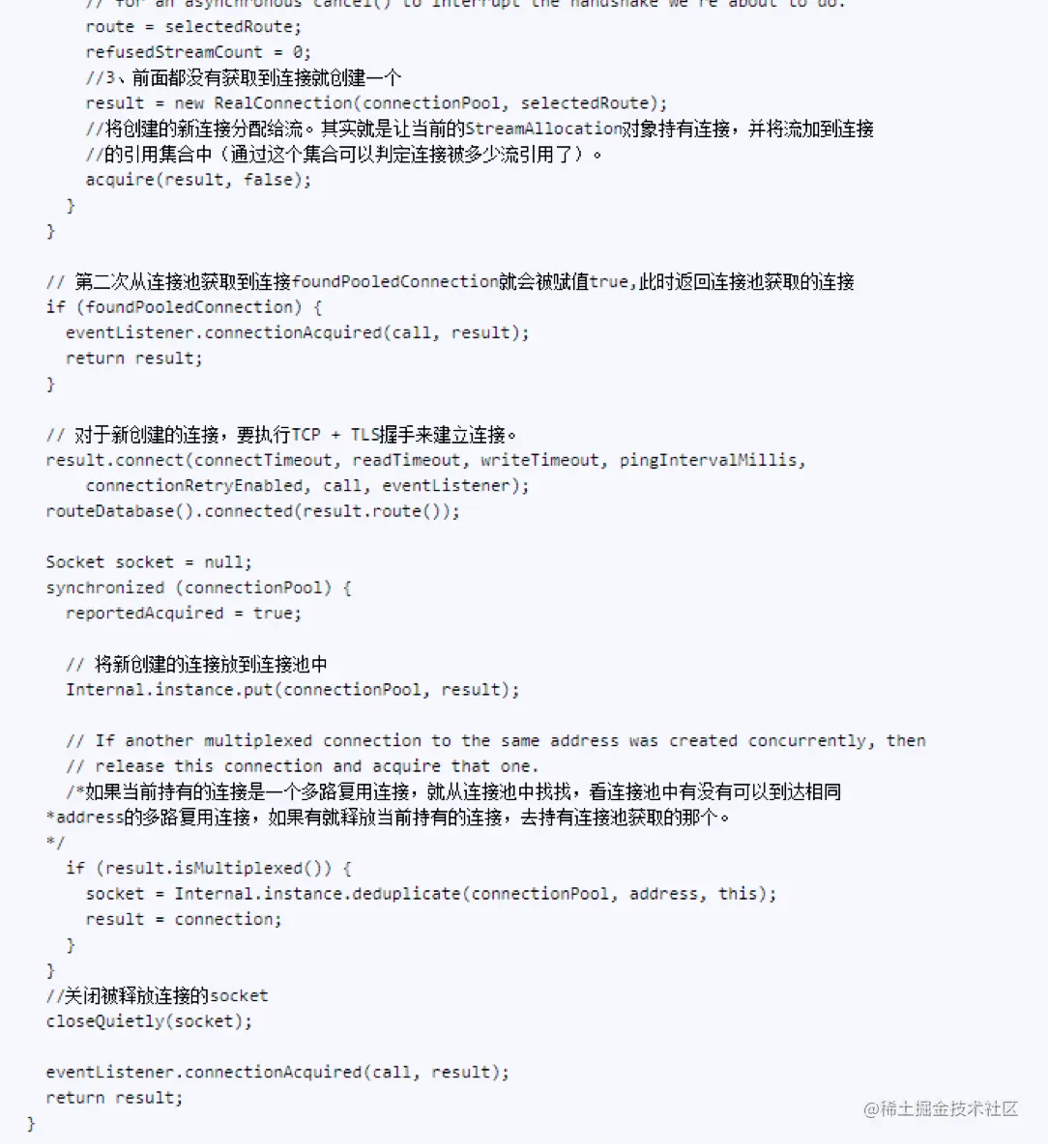 4.3.2 如果 streamAllocation 对象无可用的 connection 对象,则通过 Internal.instance 从连接池中查找可用的 connection 对象;