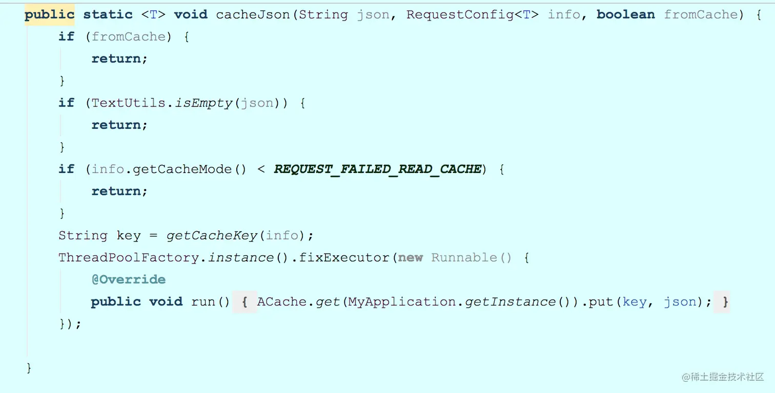 // cache()方法传入了由缓存目录、缓存大小构成的Cache实例