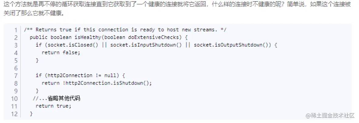 5.3 在BridgeInterceptor的 intercept() 方法中requestBuilder.header("Connection", "Keep-Alive"),我们在request的请求头添加了("Connection", "Keep-Alive")的键值对,这样就能够保持长连接。而连接池ConnectionPoll就是专门负责管理这些长连接的类。需要注意的是,我们在初始化 ConnectionPoll的时候,会设置 闲置的connections 的最大数量为5个,每个最长的存活时间为5分钟。