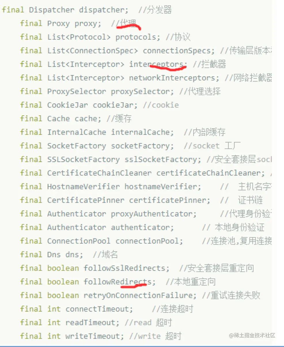 3.1.1 通过 OkHttpClient 实例化 初始化我们需要初始化的 http连接协议 代理地址 缓存控制 Cookie 证书连接 代理选择器等