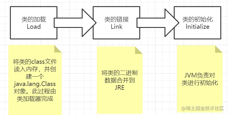 当程序主动使用某个类,该类还未被加载到内存中,系统会通过如下三个步骤对该类进行初始化