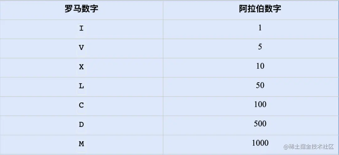 | 罗马数字包含以下七种字符:I, V, X,L,C,D 和 M。 |