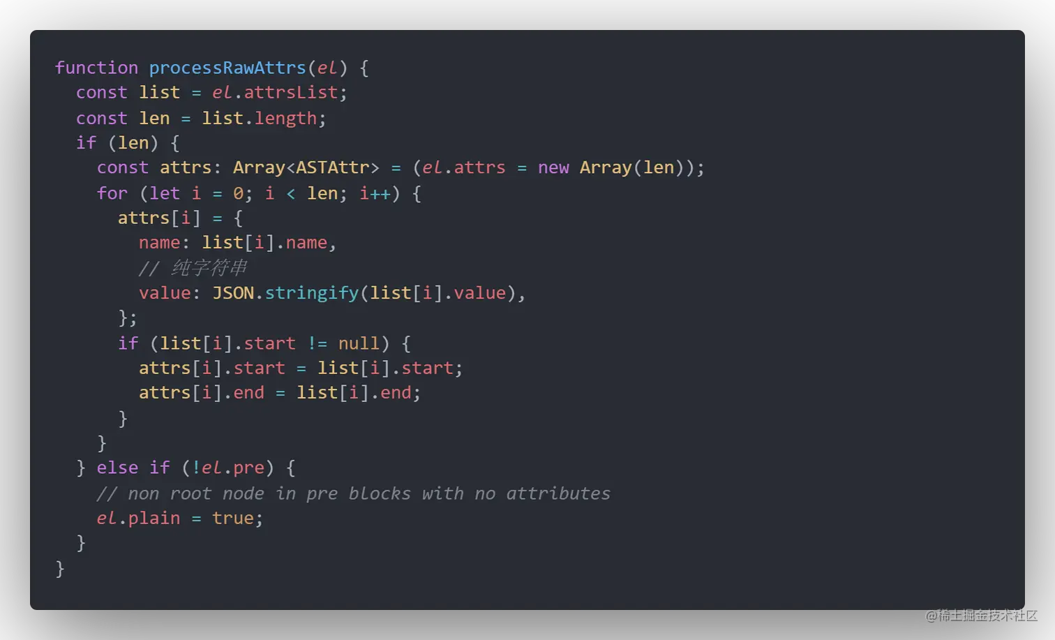 9. 如果有v-pre指令就只调用 processRawAttrs函数
