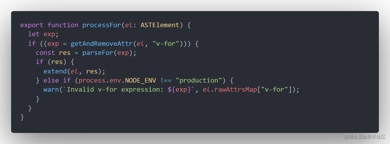 colseElement函数,是最终要的函数。在start函数中,仅仅是初步建立了ast元素,处理了一v-for,v-if,v-else-if,v-else,v-once。