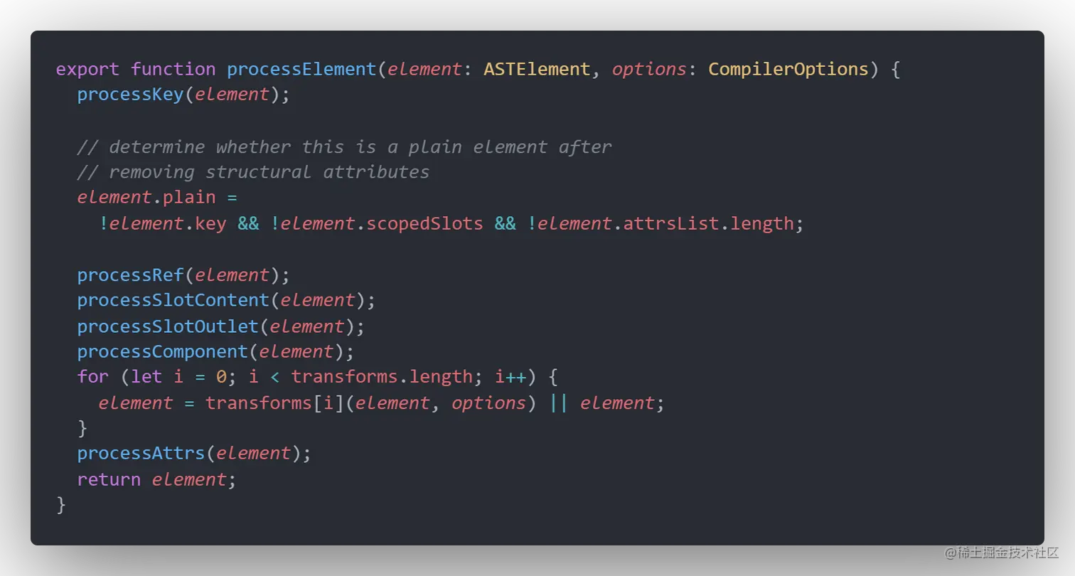 1. 如果函数没有processed标记,就调用processElement,再次处理ast