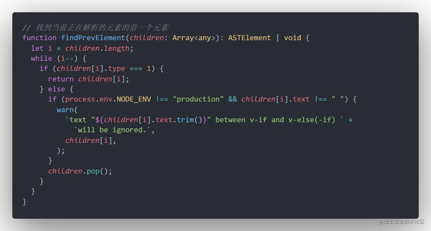 - findPrevElement函数通过parent.children数组,找到同级的带有v-if指令的元素