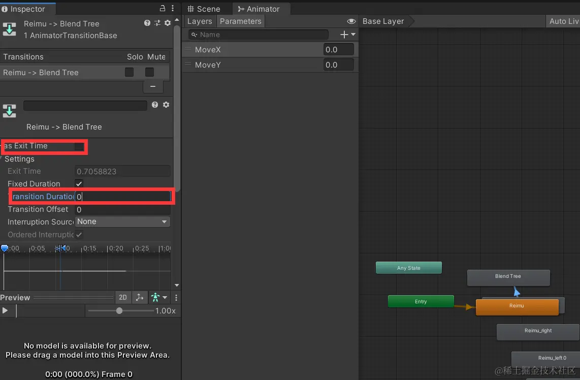 (2)双击打开animatorcontroller,通过blend tree 或 通过Make transition添加动画的交换条件 或 两者共同作用;
