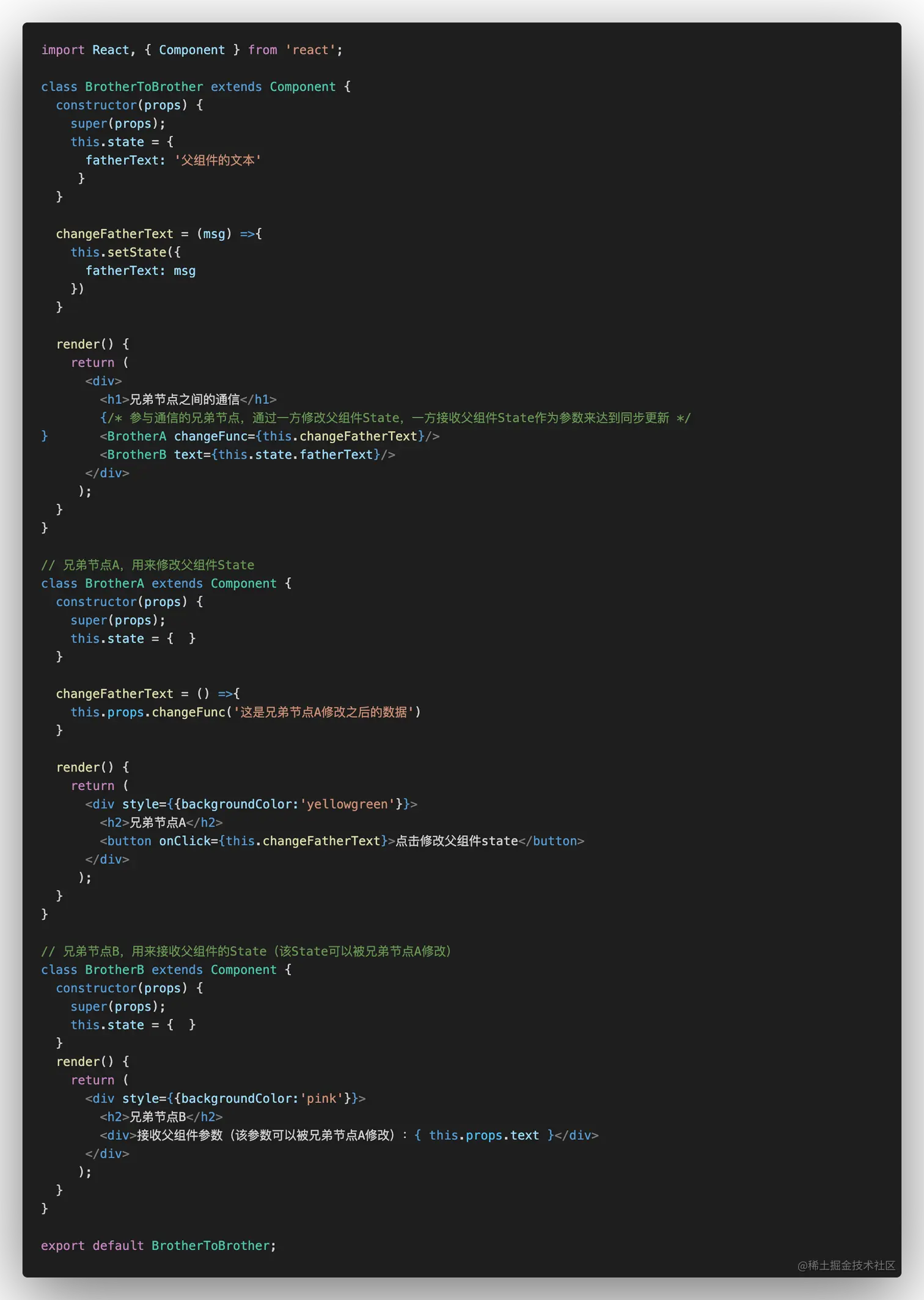 兄弟节点之间的通信是建立在父子组件,子-父组件之间通信的基础上的