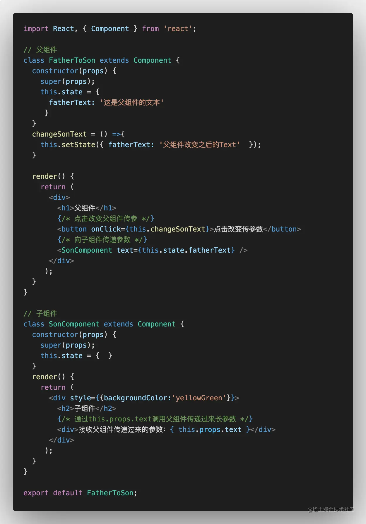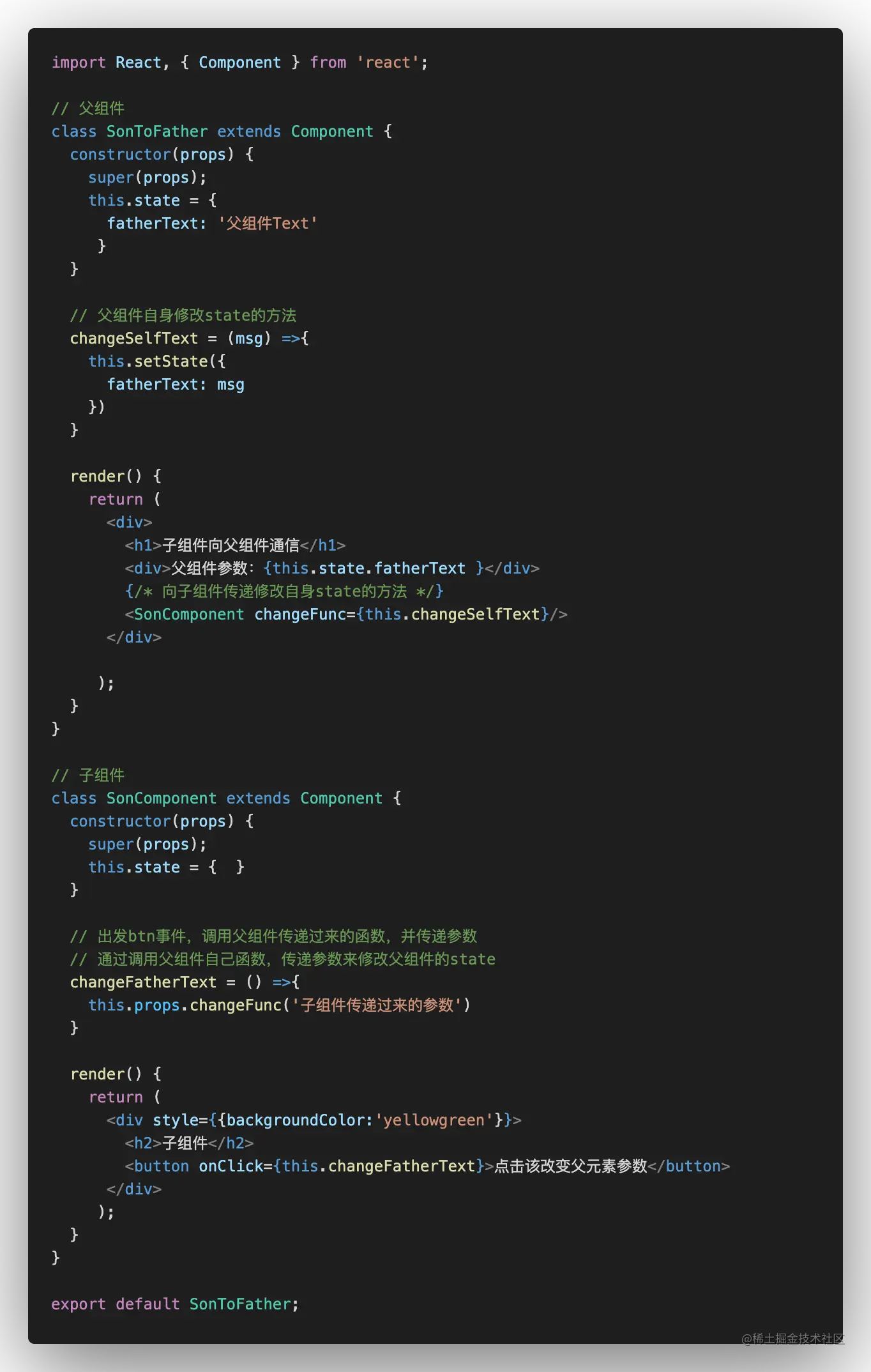 父组件通过props传递一个修改自身数据state的方法给子组件