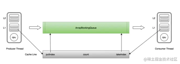 ArrayBlockingQueue在实际使用过程中,会因为加锁和伪共享等出现严重的性能问题,我们下面来分析一下。