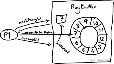 基本来说,ringbuffer拥有一个序号,这个序号指向数组中下一个可用的元素。