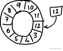 以上面的ringbuffer为例(java的mod语法):12 % 10 = 2。很简单吧。
