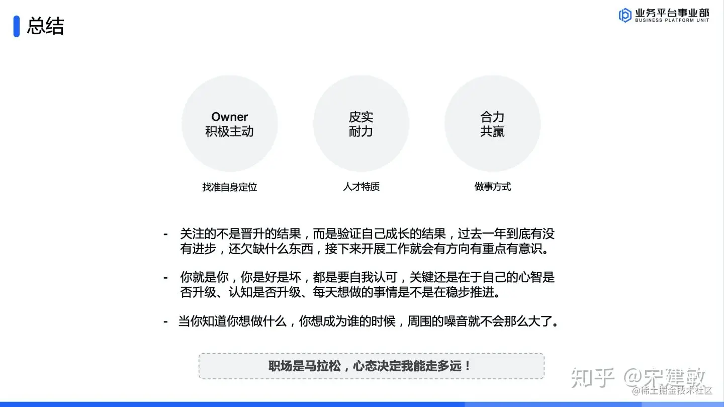 心态要摆正,成长是自己的事,职场那么长,长达三十年,为什么我要跟面子过不去,老拿自己去和身边的同学比,非要去死磕层级,累不累?坚定我当前做的事是不是一件正确的事情,是不是解决了业务痛点,在当下,我的核心竞争力是什么?成长真要有什么灵丹妙药的话,可能是我的主管 @梓骞 一直以来的思维方式是怎么通过技术产品化等工作,提升团队的运转效率,那就可以做更多新的事情,自然而然的就成长了,这个思维方式对我影响很深,至少经过目前为止的验证还是成立的!一年可能看不到成果,需要三年~五年;