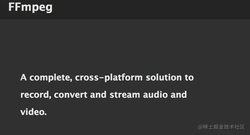 如上图所示,箭头标注的部分都是没有声音产生的。我们在这个位置的两端来去除没有声音的部分就好了。思路已经有了,但是只有思路是不可能解决问题的。接着来说ffmpeg,看下官网的介绍: