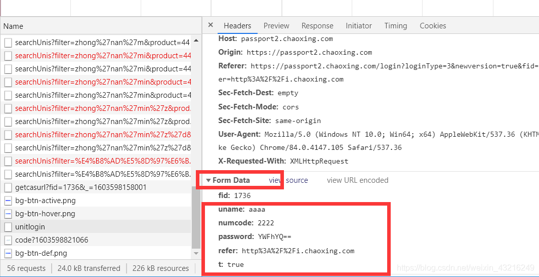 在最后的图中的formdata就是本次登录的信息(账号,密码(base64加密),验证码等)