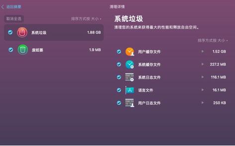 以上就是关于这两款不同的Mac清理软件的对比介绍了,碍于篇幅,上述只是简单对比了它们的一键扫描功能,还能其余的功能都有待比较,总而言之,CleanMyMac软件的功能和性能都很不错,感兴趣的用户可以下载CleanMyMac进行使用。