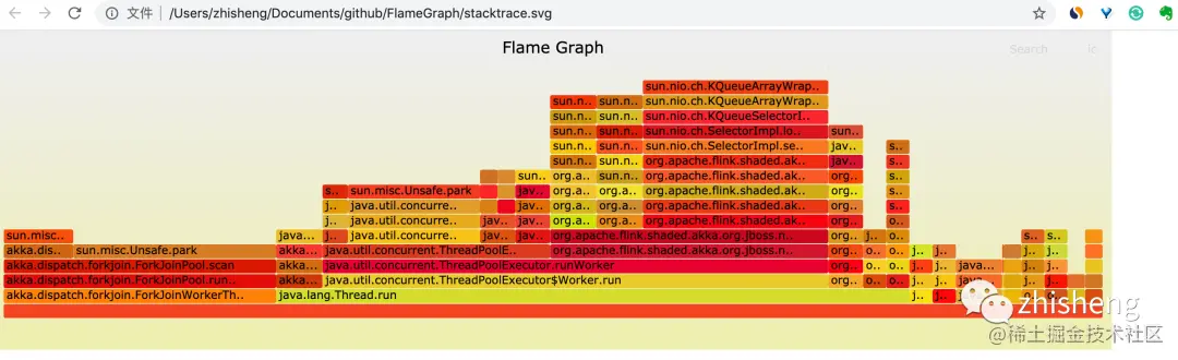 ./flamegraph.pl /Users/zhisheng/Documents/github/jvm-profiler/stacktrace.folded > stacktrace.svg