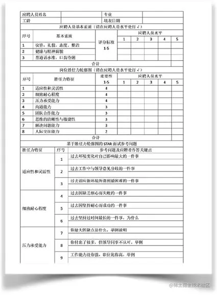 - 评分表是为了量化面试结果,为后续的筛选提供决策基础;