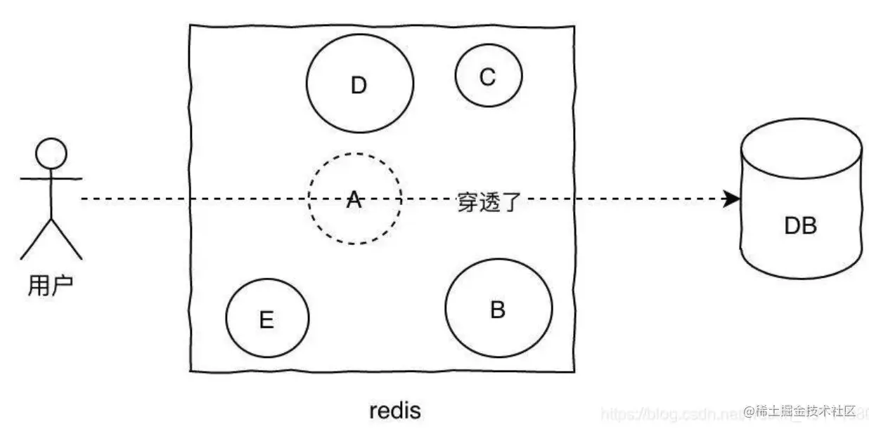 缓存穿透是指查询不存在缓存中的数据,每次请求都会打到DB,就像缓存不存在一样。