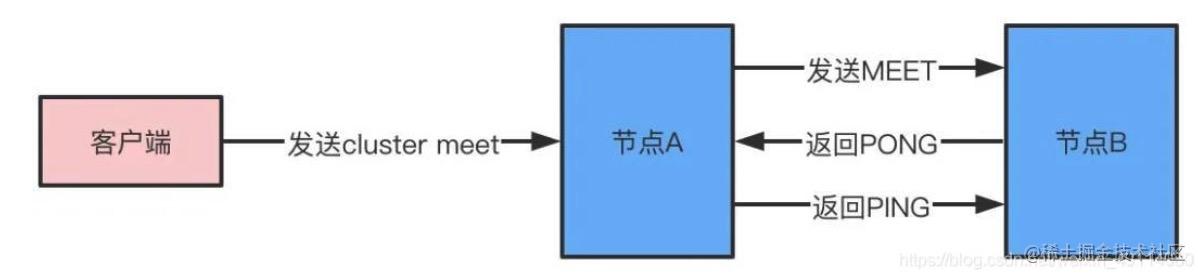 一个redis集群由多个节点node组成,而多个node之间通过cluster meet命令来进行连接,节点的握手过程: