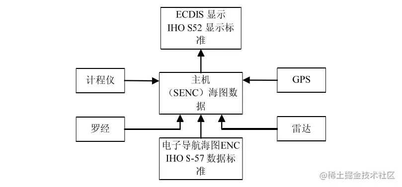 电子海图信息系统( Electronic Chart Display and information SystemS),属于海图显示系统,是专门用来显示官方电子导航海图(ENC)的。ENC是唯一可以合法地用于 ECDIS上的电子海图数据库的。 IMO ECDIS性能标准中指出,ECDIS是一个导航信息系统,这个系统具有充分的后备措施,可以被接受为符合1974年SLAS公约中V/20条规则要求的最新海图。它可以有选择地显示系统电子导航海图(SENC)中的信息以及从导航传感器获得的位置信息以帮助航海人员进行航路设计,其组成部分为下图所示
